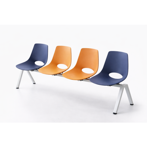 Banquette Kopi-O 3 places – Assise en polypropylène Ossature tubulaire métallique Coloris Bleu, Mangue ou Assortie