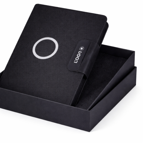 Coffret Agenda VIP 16x22 cm en similicuir avec Power-Bank et 2 Accessoires Complets coloris au choix