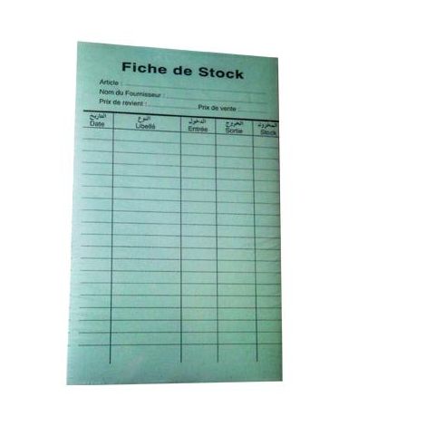 Bloc de 100 feuillets pré-imprimés "Fiche de Stock" 21x29 cm