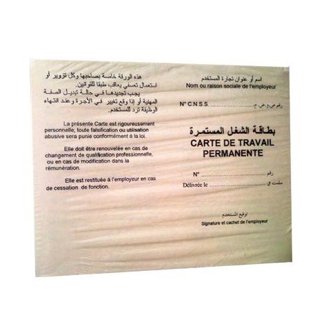 Bloc de 100 feuillets pré-imprimés "Carte de travail permanente" 16x12,5 cm