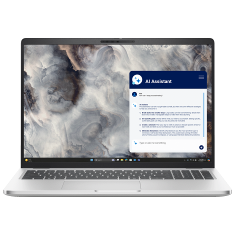 Son écran 16” FHD+ antireflet assure un confort visuel optimal, tandis que son clavier rétroéclairé AZERTY avec pavé numérique et touche Copilot améliore la productivité au quotidien. Sa batterie longue durée compatible ExpressCharge™ garantit une autonomie adaptée à une journée de travail mobile, dans un silence thermique qui favorise la concentration.