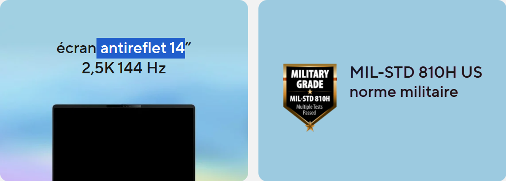 Taille de l'écran 14.0" WQXGA (2560 x 1600) 16:10, 400nits, 144Hz, 1200:1