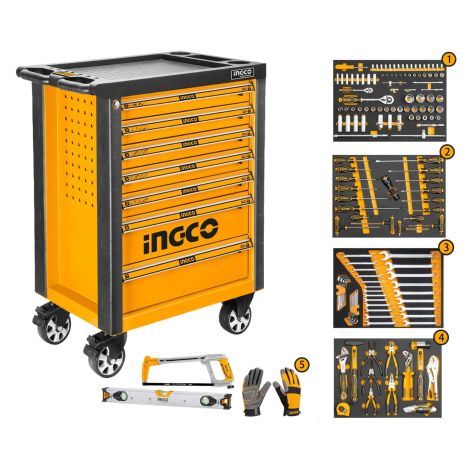 Servante/coffre à outils INGCO à 7 tiroirs avec ensemble d'outils à main de 162 pièces (HTCS271621)
