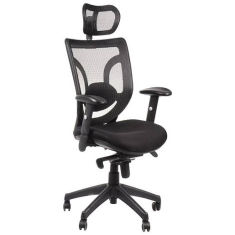 Fauteuil Manager SIMON avec têtière et support dorsal Tissu Mesh Noir
